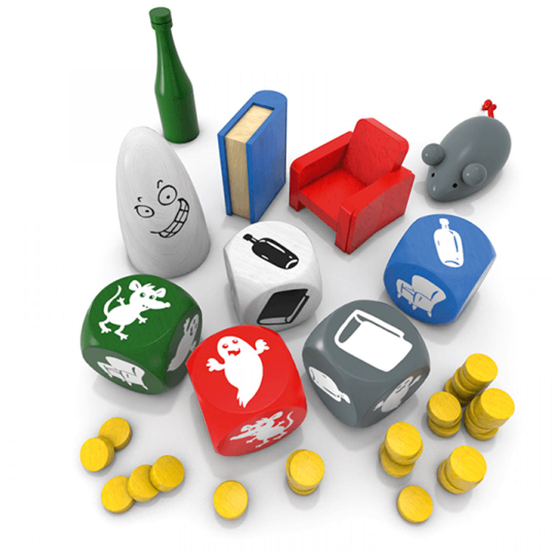 En Fantasma Blitz Dados, los jugadores compiten para ser los primeros en agarrar la figura correcta del centro de la mesa, cada una representando diferentes elementos que Balduin, el fantasma, debe coincidir según el resultado de los dados lanzados. El objetivo es acumular el mayor número de puntos, capturando la figura adecuada antes que los demás jugadores.