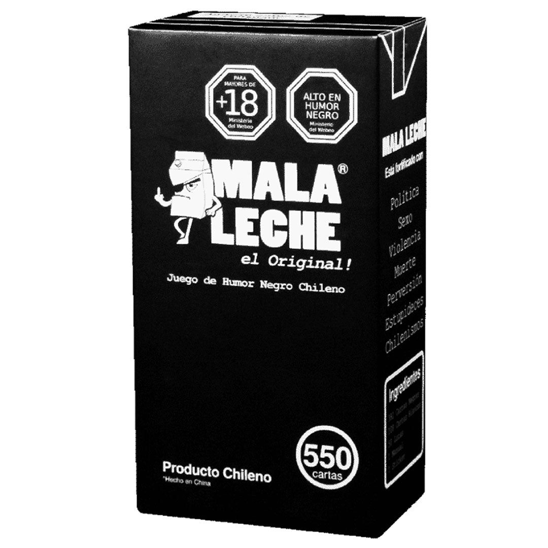Mala Leche Original es un descarado y provocador juego de cartas chileno diseñado para desatar las respuestas más irreverentes y polémicas entre los jugadores. Perfecto para aquellos con un sentido del humor audaz y una tolerancia a la controversia, este juego te invita a completar frases de manera que sorprendas, diviertas o incluso choques al "Dealer" y a los demás jugadores con combinaciones que reflejen los aspectos más oscuros y cómicos de la sociedad.