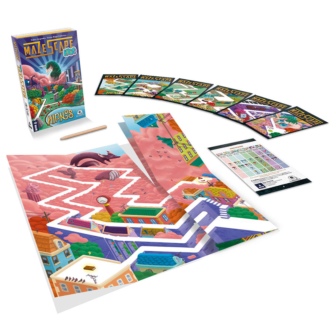 La caja de Mazescape Kids: Hipnos contiene siete mapas, cada uno con dificultades progresivas y múltiples retos secundarios que proporcionan una alta rejugabilidad. Este juego no solo ofrece entretenimiento, sino que también fomenta habilidades críticas como la observación y el pensamiento estratégico. Ideal para niños mayores de 6 años, Mazescape Hipnos es perfecto para jugar en familia, ayudando a los niños a desarrollar su capacidad de concentración y razonamiento en un formato portátil fácil de llevar a cualquier lugar.